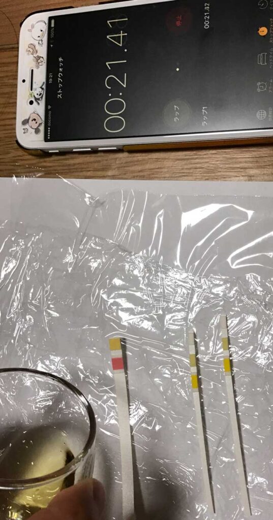 それぞれに結果を見るべきタイミング(指定秒数)があるので、タイマーを使って確認しましたが、異常が無い尿検査でした。