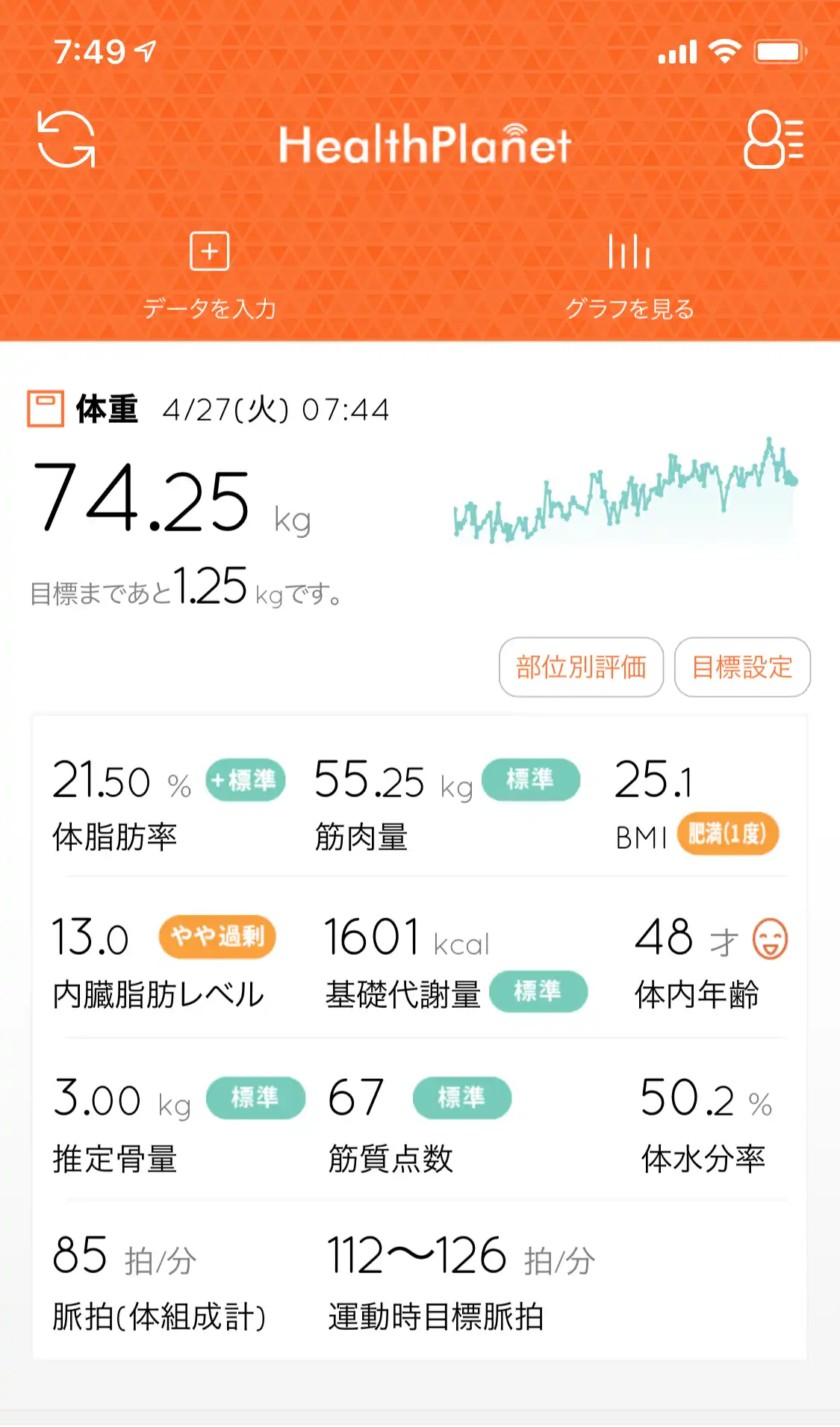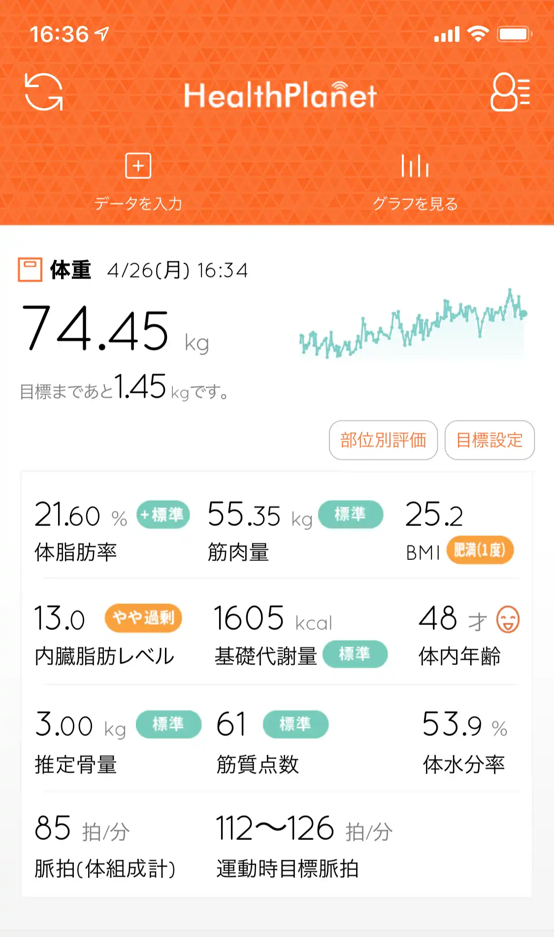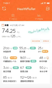ちなみに昨日の夕食前の体重データー