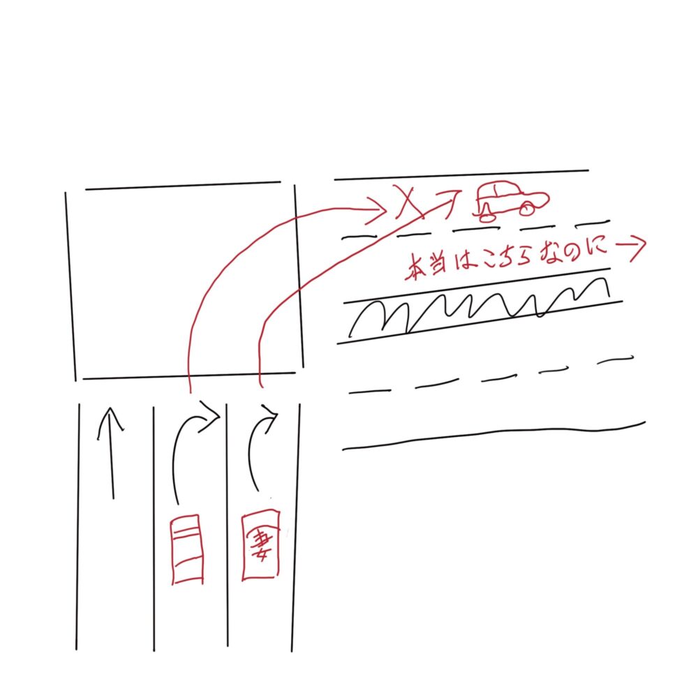 - 妻はその中でも一番右レーンだから右折した先の道路では右車線に入るのがマナー。