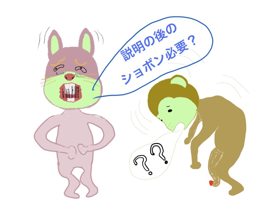 よく分からないが、私が説明を終えた後で、ショボンと垂れ下がる動作を入れたのが余程可笑しかったらしい。