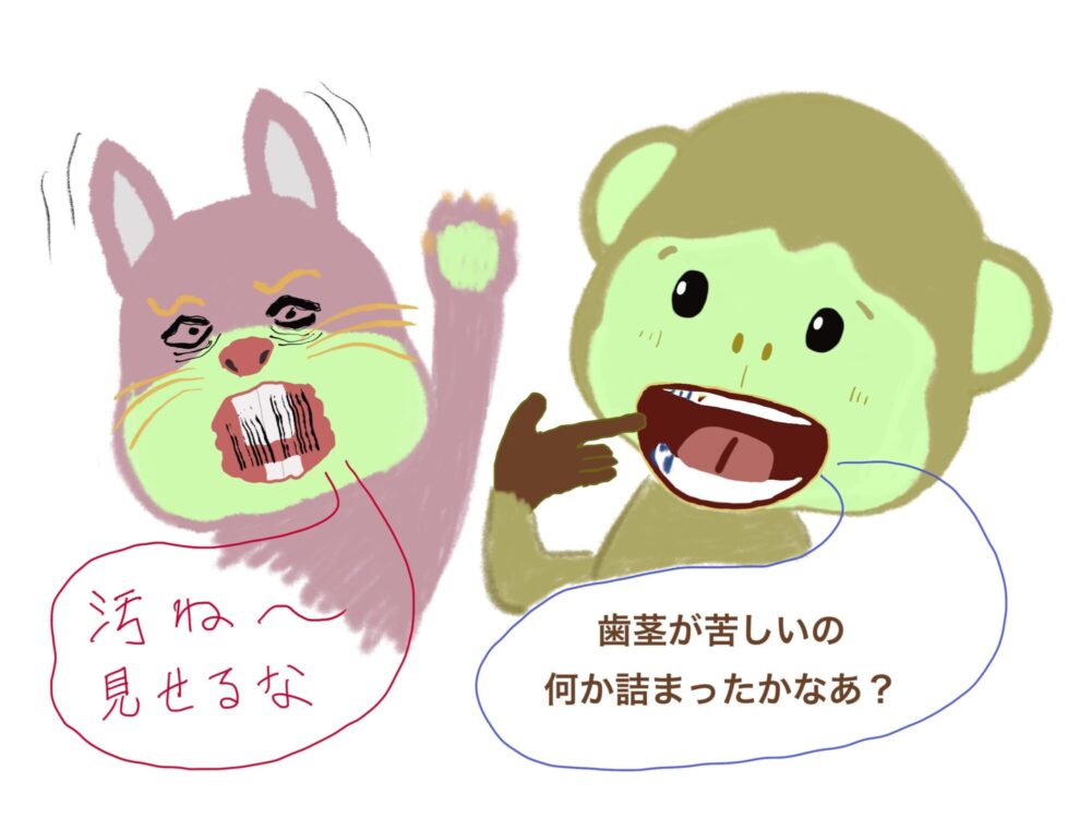 うさちゃん、サルは歯茎が苦しいの。何か詰まってしまったのかな?
