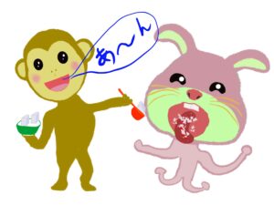 夫婦バカ話、ウサちゃんの汚い口を見てしまったサル