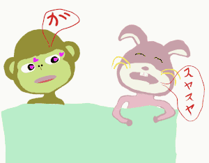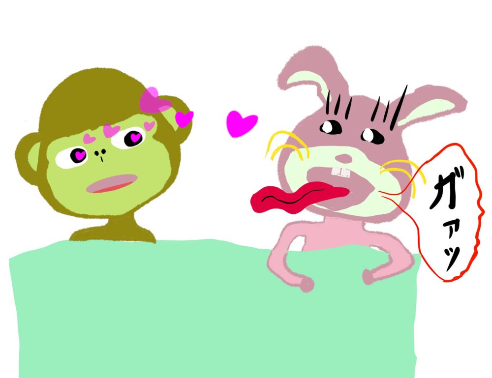なぜサルなのか?それはサルに似ているとウサウサが言い始めたのがきっかけ。