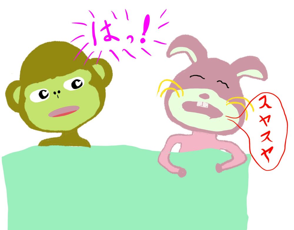 サルは夜中に目が覚めると、ハッとする。