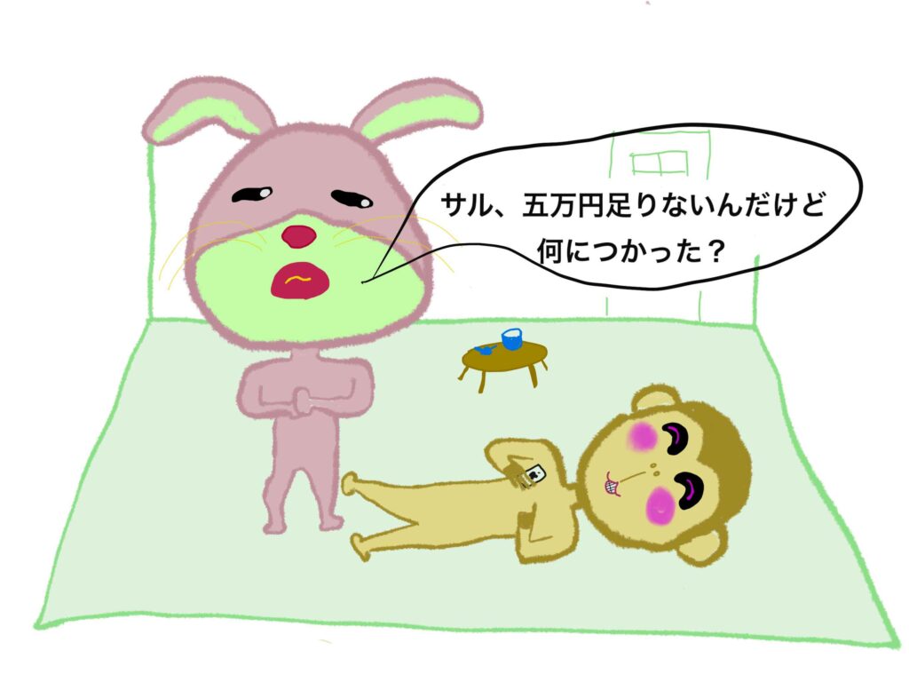 ウサウサは、何かでサルが現金を使うとき、必ず先にお金をくれるんだよ。