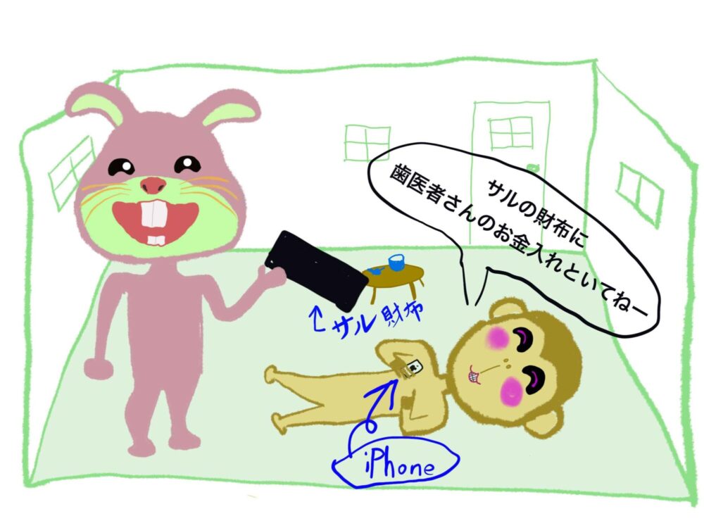 だから歯医者さんに行く時に、ウサちゃんに現金を入れておいてねってお願いしたんだ。