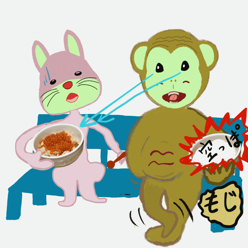ウサウサもサルも元気な幸せだからこそ食べ過ぎるね。