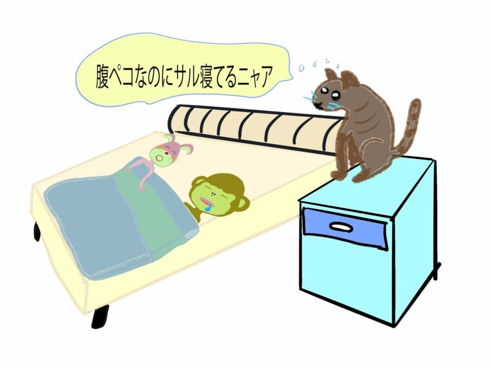 ニャモの甘噛みは、そこまで痛くないけど、無視して寝るには痛いし、可愛いので夜食をあげるよ。