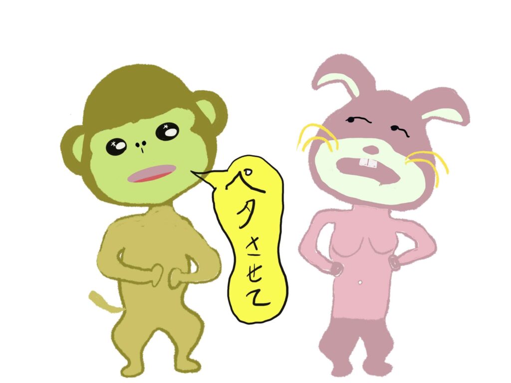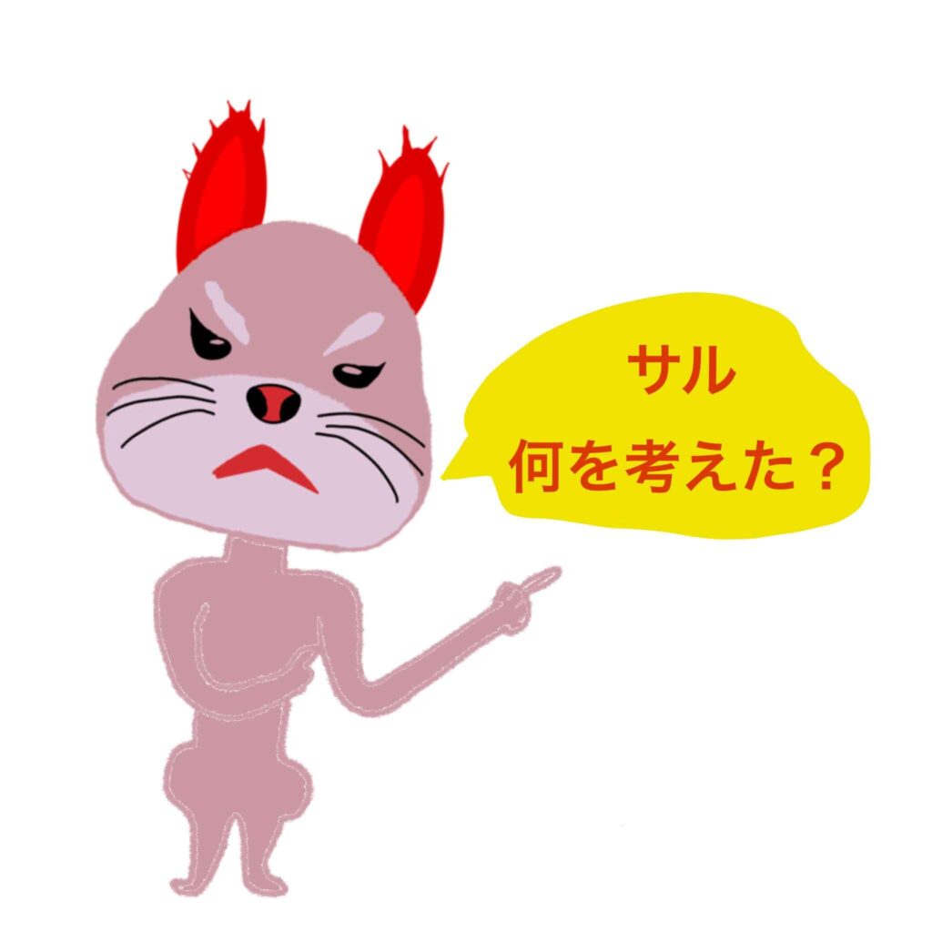 なぜサルなのか?それはサルに似ているとウサウサが言い始めたのがきっかけ。