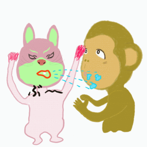 なぜサルなのか?それはサルに似ているとウサウサが言い始めたのがきっかけ。