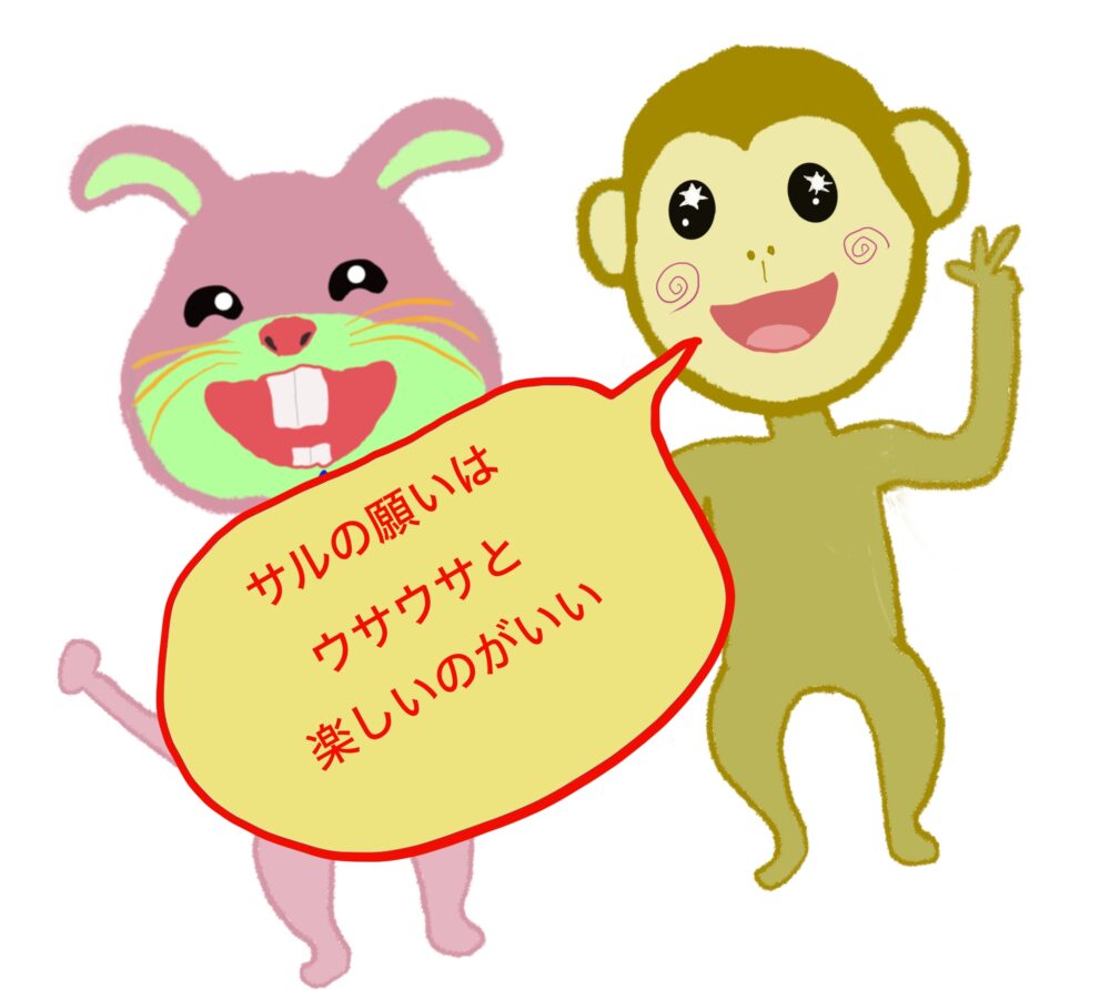なぜサルなのか?それはサルに似ているとウサウサが言い始めたのがきっかけ。