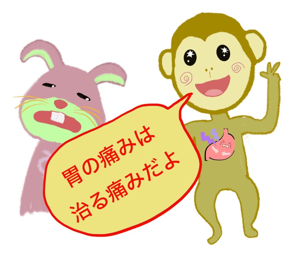サルの胃の痛みは、余命1ヶ月とか治らない痛みじゃ無い。