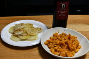 ミートソース絶品だよ。マカロニは脱グルテンだよ。豆のマカロニ。
