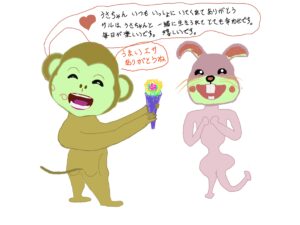 サルはこの先の人生をかけてウサウサの幸せな日を1日でも多く作りたいんだ。