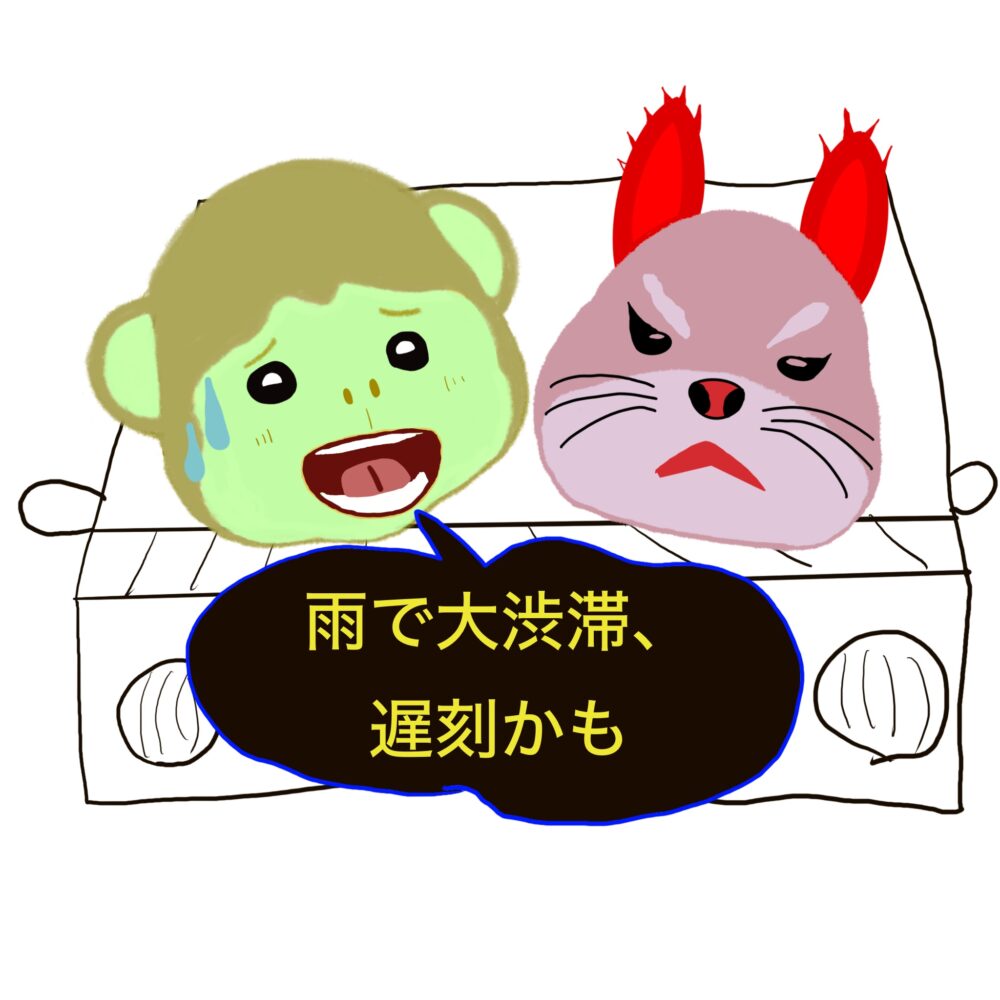 ウサウサと2人で車で移動してた。人と約束があり朝の通勤ラッシュ時間帯のドライブだったけど、そこは計算して十分に早めに家を出たはずだった。