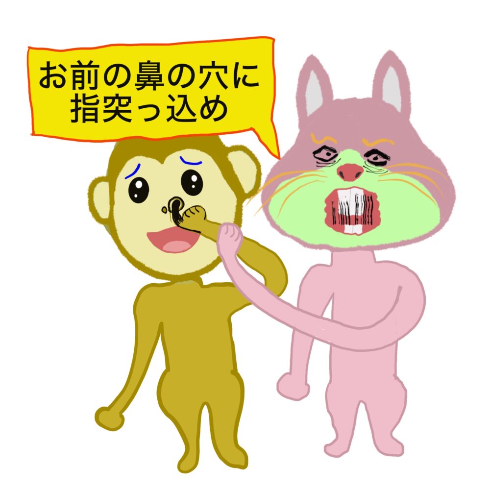 ウサウサの怒りを買うサル