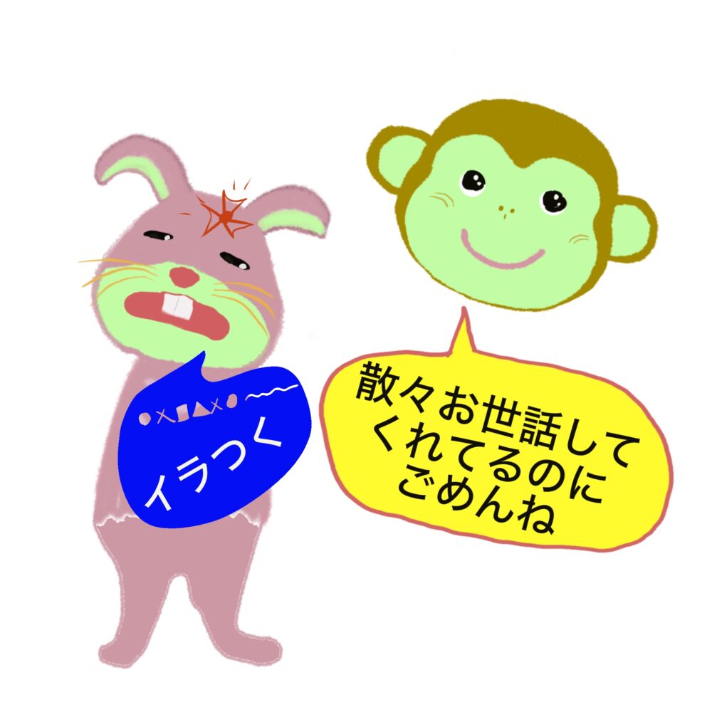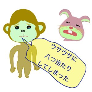 数日、痛風が悪化して痛くて心が疲れたサルは、ウサウサに八つ当たりした。