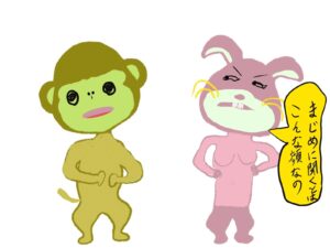なぜサルなのか?それはサルに似ているとウサウサが言い始めたのがきっかけ。