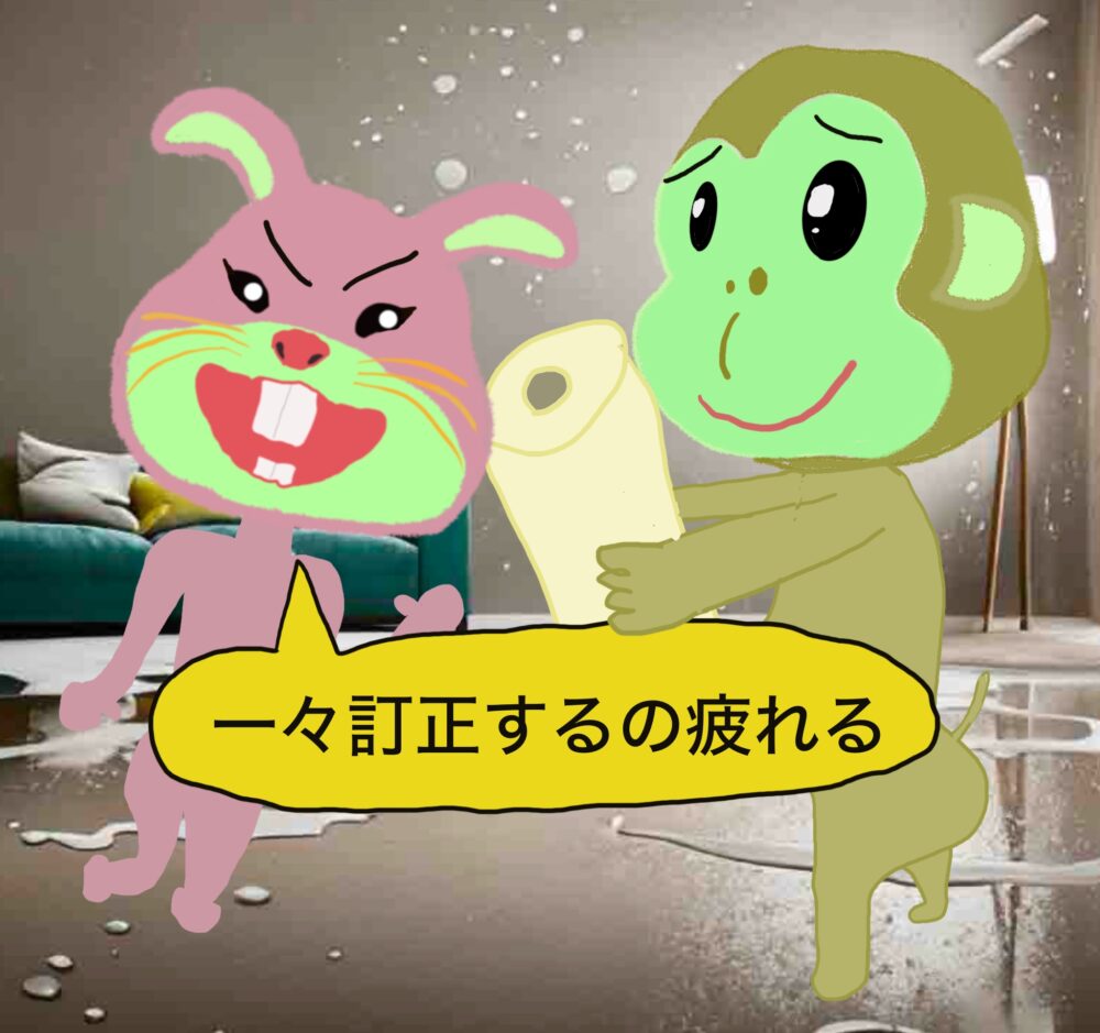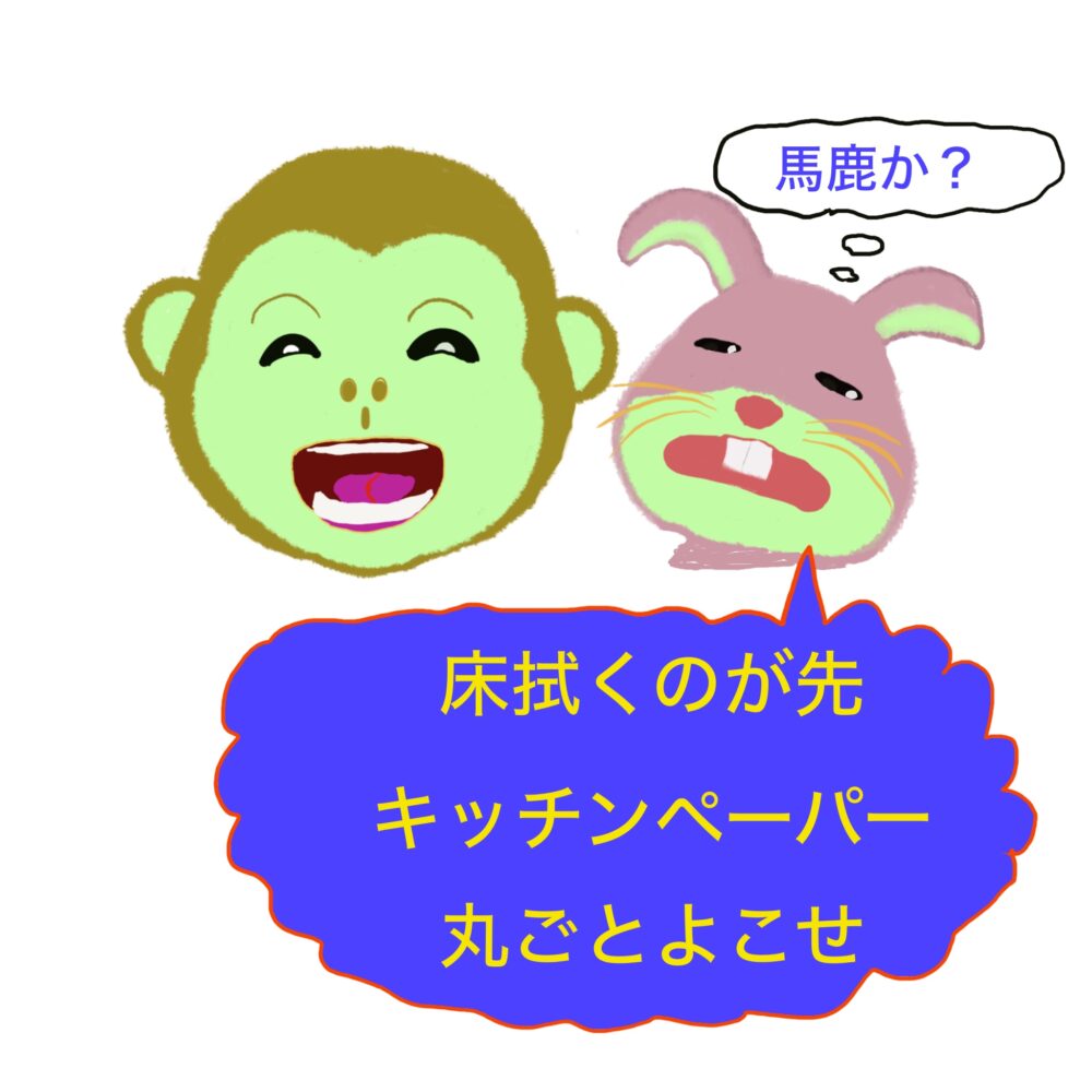ウサウサは代わりに拭こうとしたが