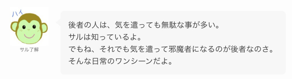 なぜサルなのか?それはサルに似ているとウサウサが言い始めたのがきっかけ。