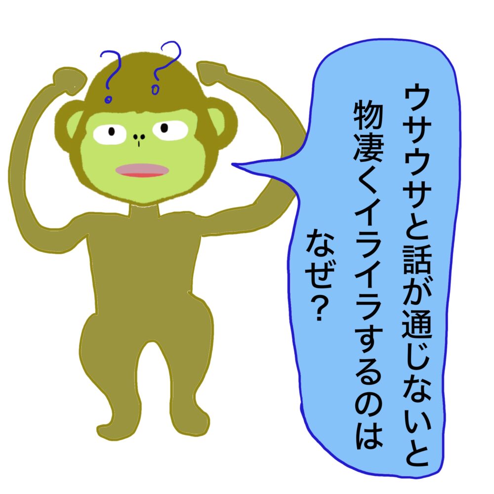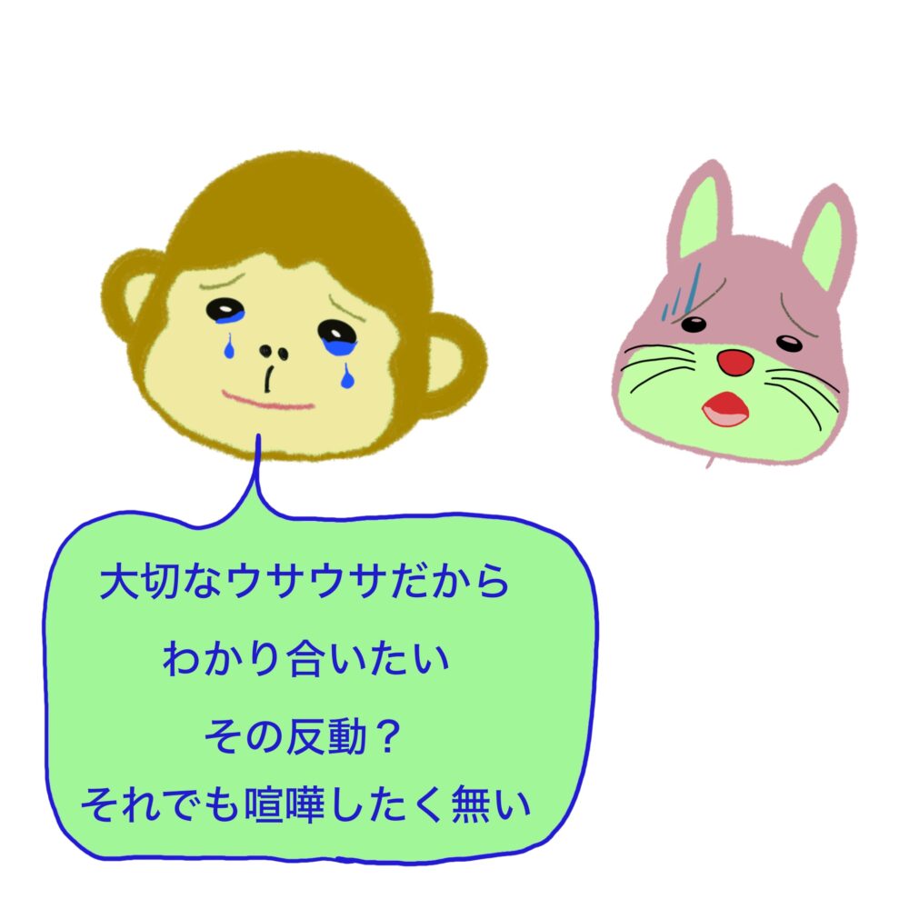 サルから言わせれば、ウサウサがサルの話を捻じ曲げて受け取るんだ。ウサウサはバカになったのかと言いたくなる。