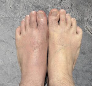 夜に帰宅した時の朝は、特に左足(痛風)は、まだ痛風のダメージが見て取れる。