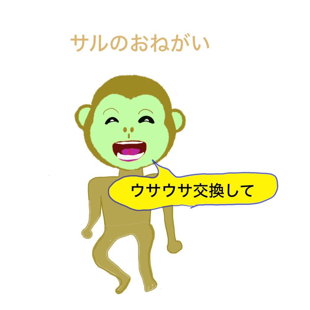 なぜサルなのか?それはサルに似ているとウサウサが言い始めたのがきっかけ。