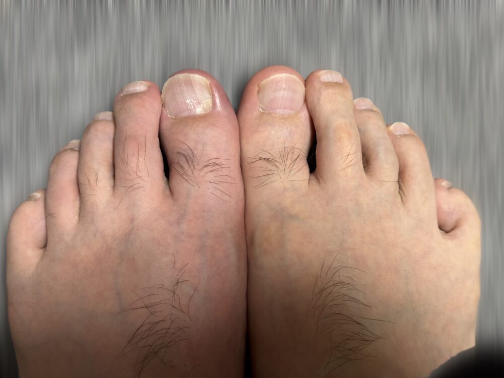 左脚親指がピリピリするな。やはり赤い。
