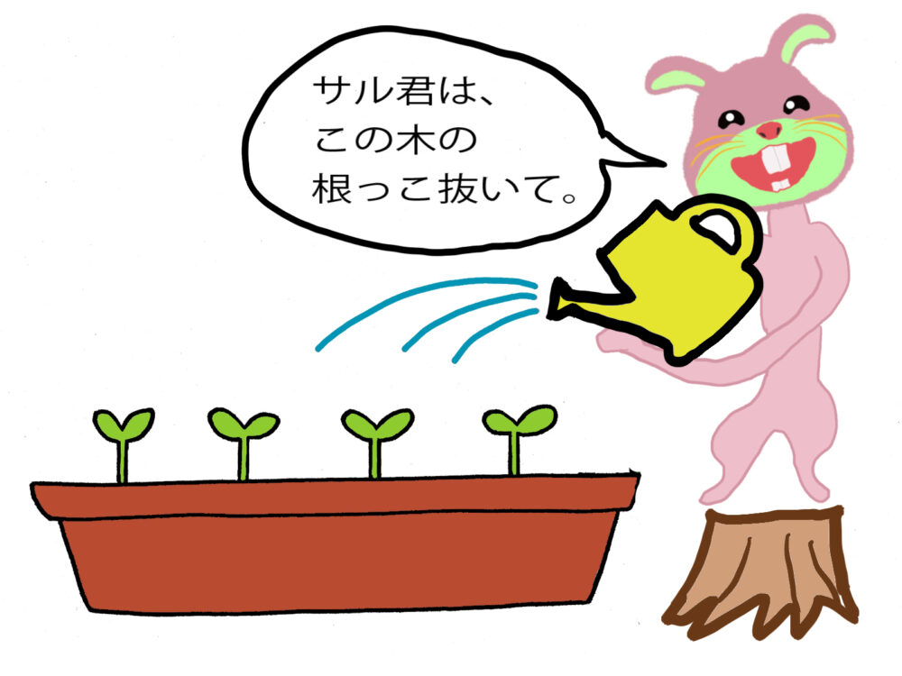 なぜサルなのか?それはサルに似ているとウサウサが言い始めたのがきっかけ。