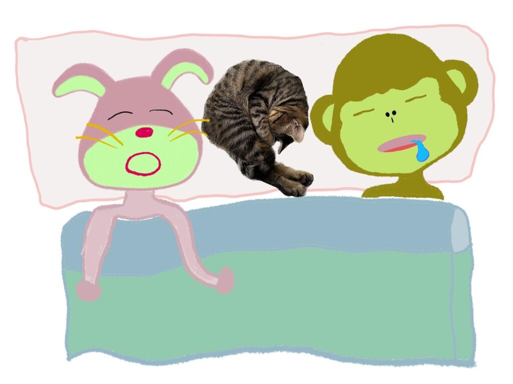 ネコがサルの腕枕で寝るのが可愛すぎて眠れないサル。 -