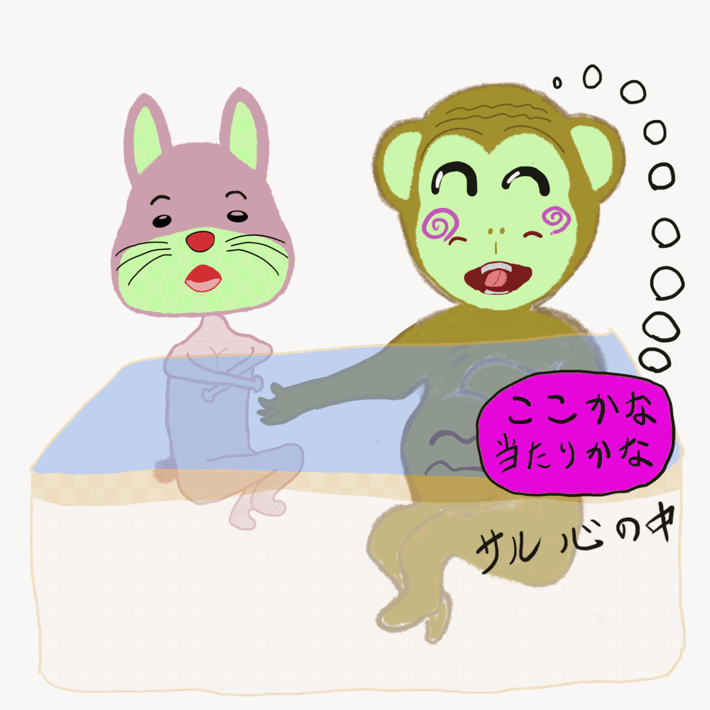 サルはウサウサを助けたい気持ち。でも手を出すと迷惑をかける。 -
