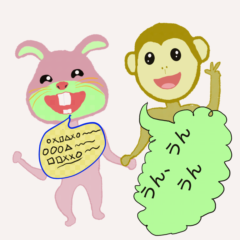 ちなみに前者後者の後者がサルです。 ウサウサから木の根っこ抜きを頼まれた 気が利かないサルも頼まれたことはできる 根っこから泥が飛んできた 慌てて口を閉じたサルはべろ噛んだ 結構痛い、サルダウン 昼飯が食えるか心配だったけど大丈夫 -