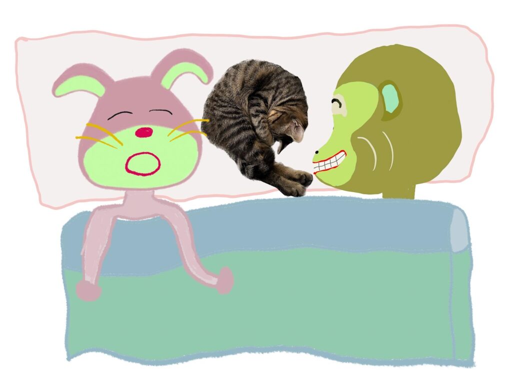 サルは早起きして、今日仲良しで過ごす気持ちでウサウサが起きてくるのを待ってたが喧嘩して仲直りまで。 -