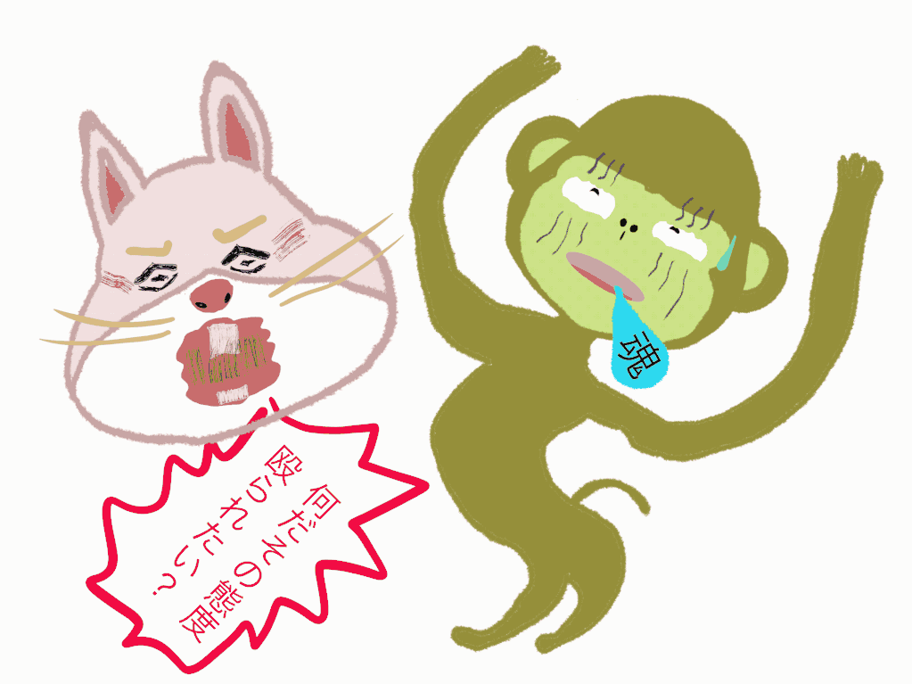 後者であるサルが頭を使う無駄。やっぱり叱られるだけだった。 -